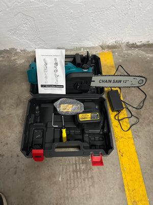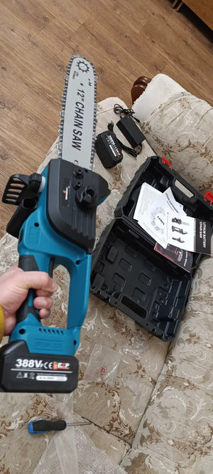 Set Complet Fierăstrău Electric Lama 30 Cm, 2 Acumulatori 48V si Ungere pe Lanț