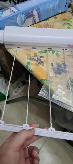 Cu uscătorul nostru retractabil, poți usca hainele în băi mici sau spații înguste fără să ocupi mult loc. Când nu este folosit, se retrage discret pe perete, oferindu-ți mai mult spațiu liber.